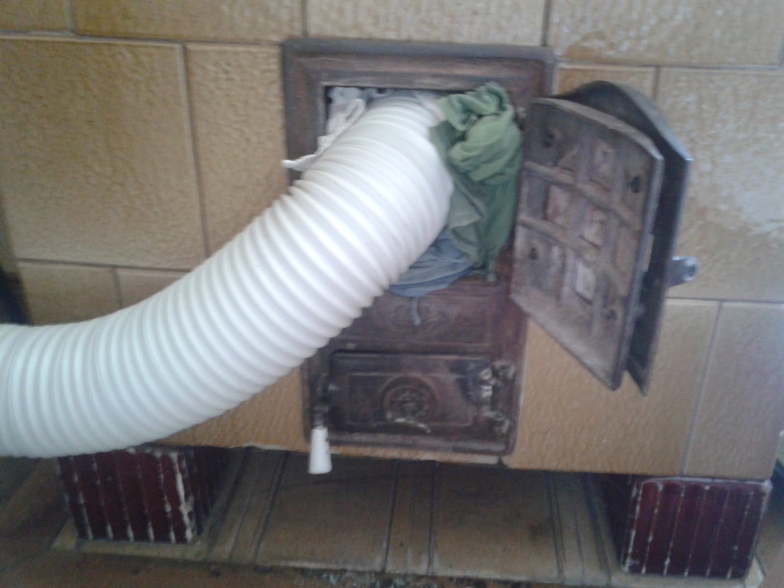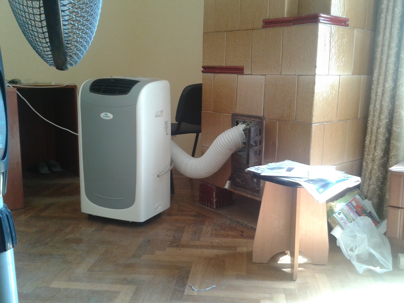 Несколько лет назад искали как в офисе временно установить напольный кондиционер, не разбивая стен и окон. Так вот придумали . Выброс горячего воздуха – в печку. Некрасиво конечно. Но что поделаешь. Единственный минус – печка к вечеру нагревалась.